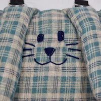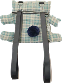 Bunny stuffed animal backpack with adjustable and removable straps. Main pocket is roughly 11” x 9”. Pom pom tail. YKK zipper. Handmade.