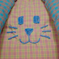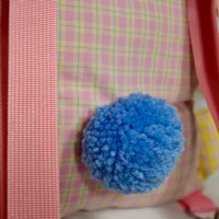 Bunny stuffed animal backpack with adjustable and removable straps. Main pocket is roughly 11” x 9”. Pom pom tail. YKK zipper. Handmade.
