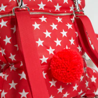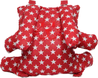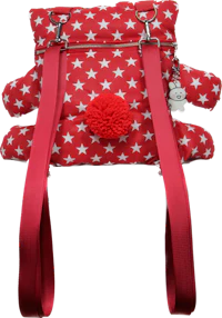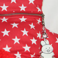 Bunny stuffed animal backpack with adjustable and removable straps. Main pocket is roughly 11” x 9”. Pom pom tail. YKK zipper. Handmade.